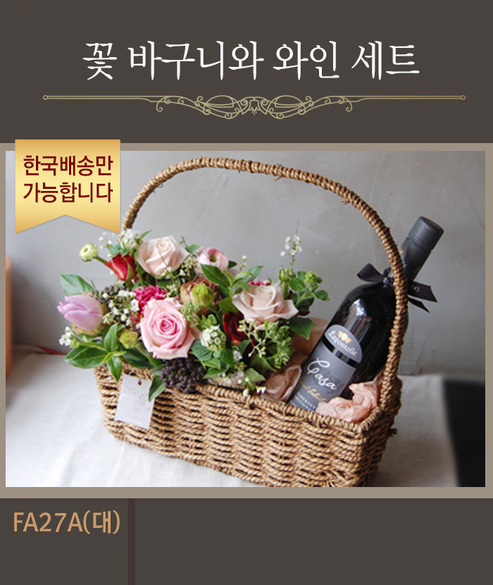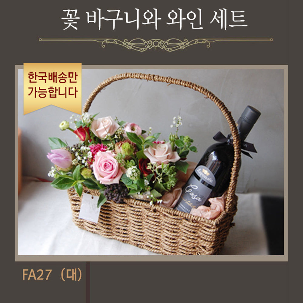[한국배송] FA27A 꽃 바구니와 와인 세트 (대)