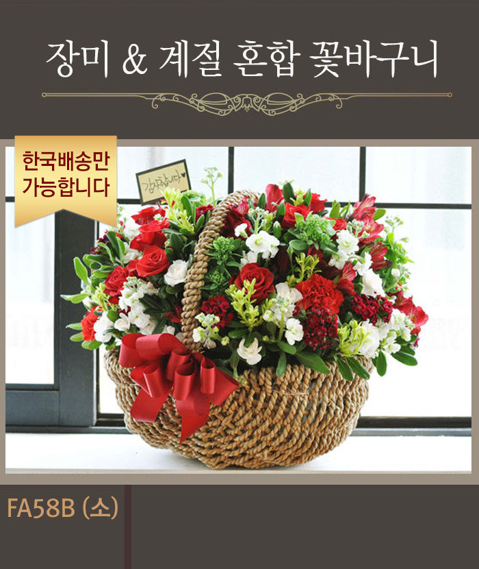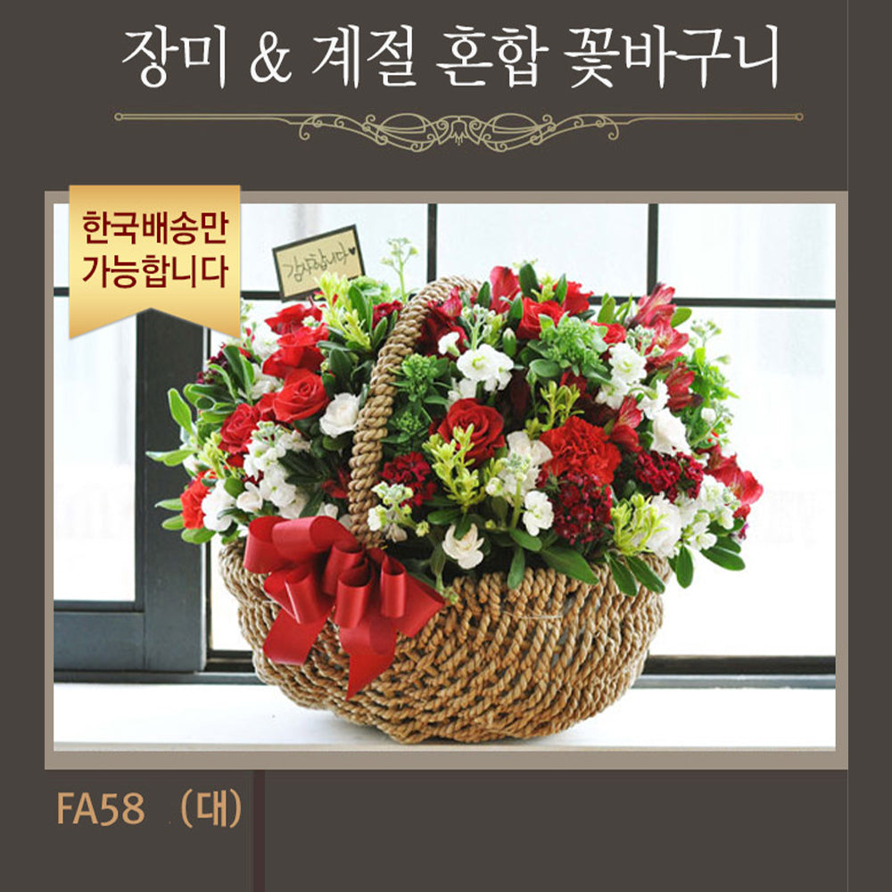 [한국배송] FA58 장미와 계절 혼합 꽃 바구니
