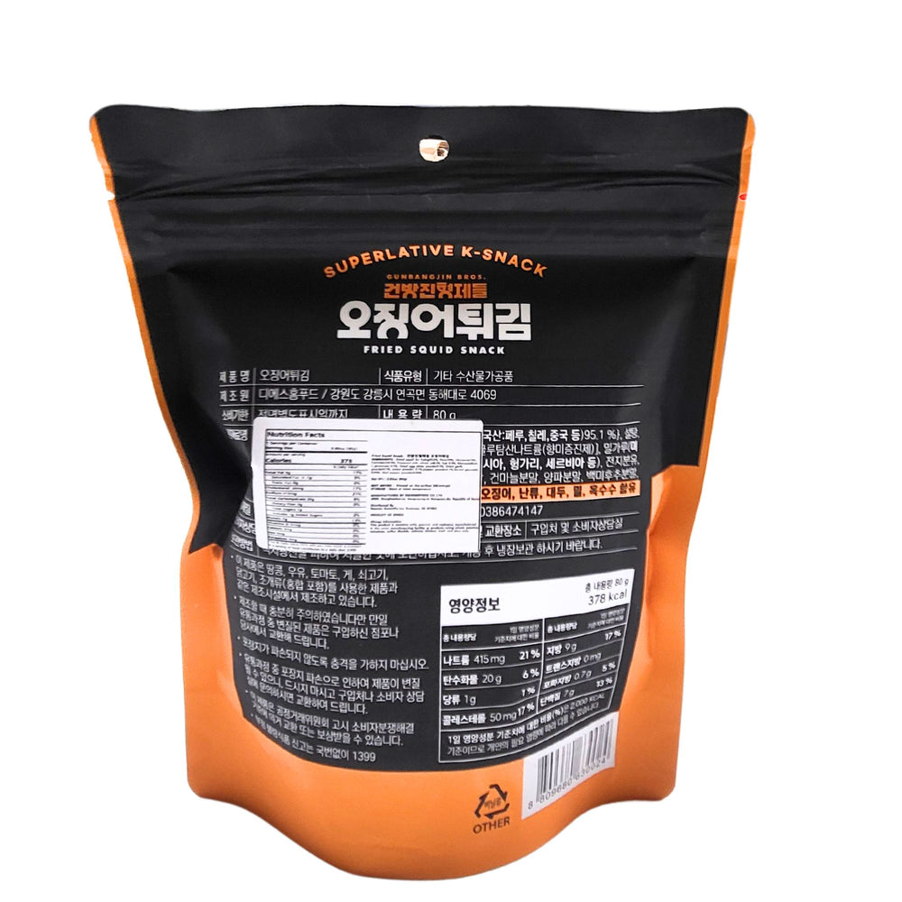 [Gunbangjun Bros] Fried Squid Snack / 건방진 형제들 오징어 튀김 (80g)