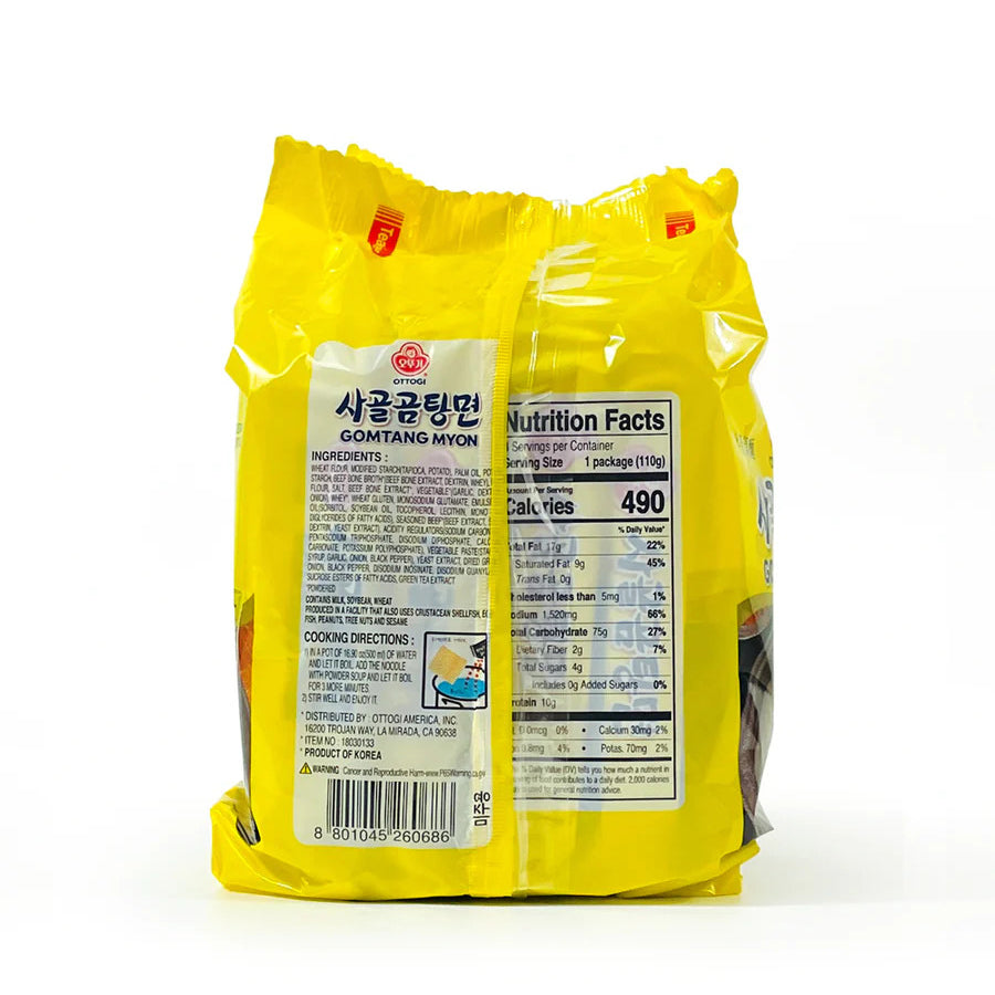 [Ottogi] Gomtang Myon Beef Bone Flavored / 오뚜기 사골 곰탕 면 (4pks)