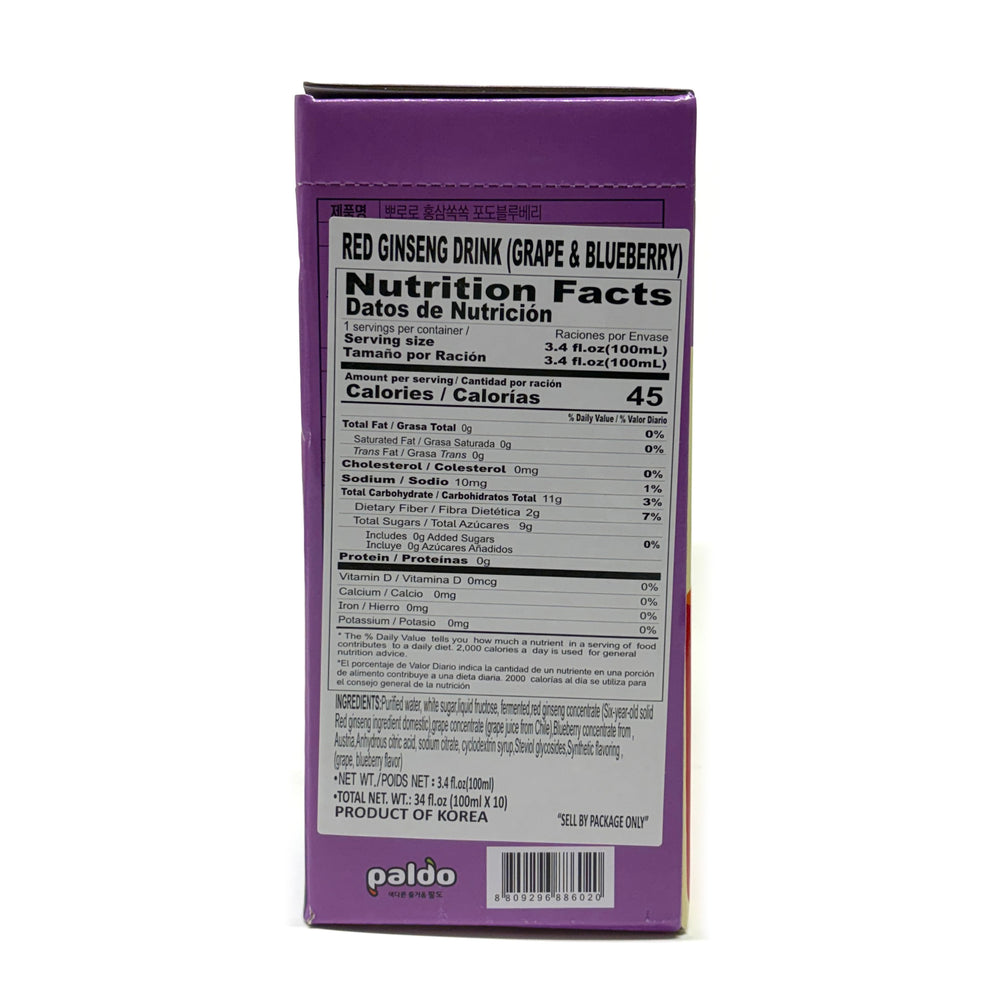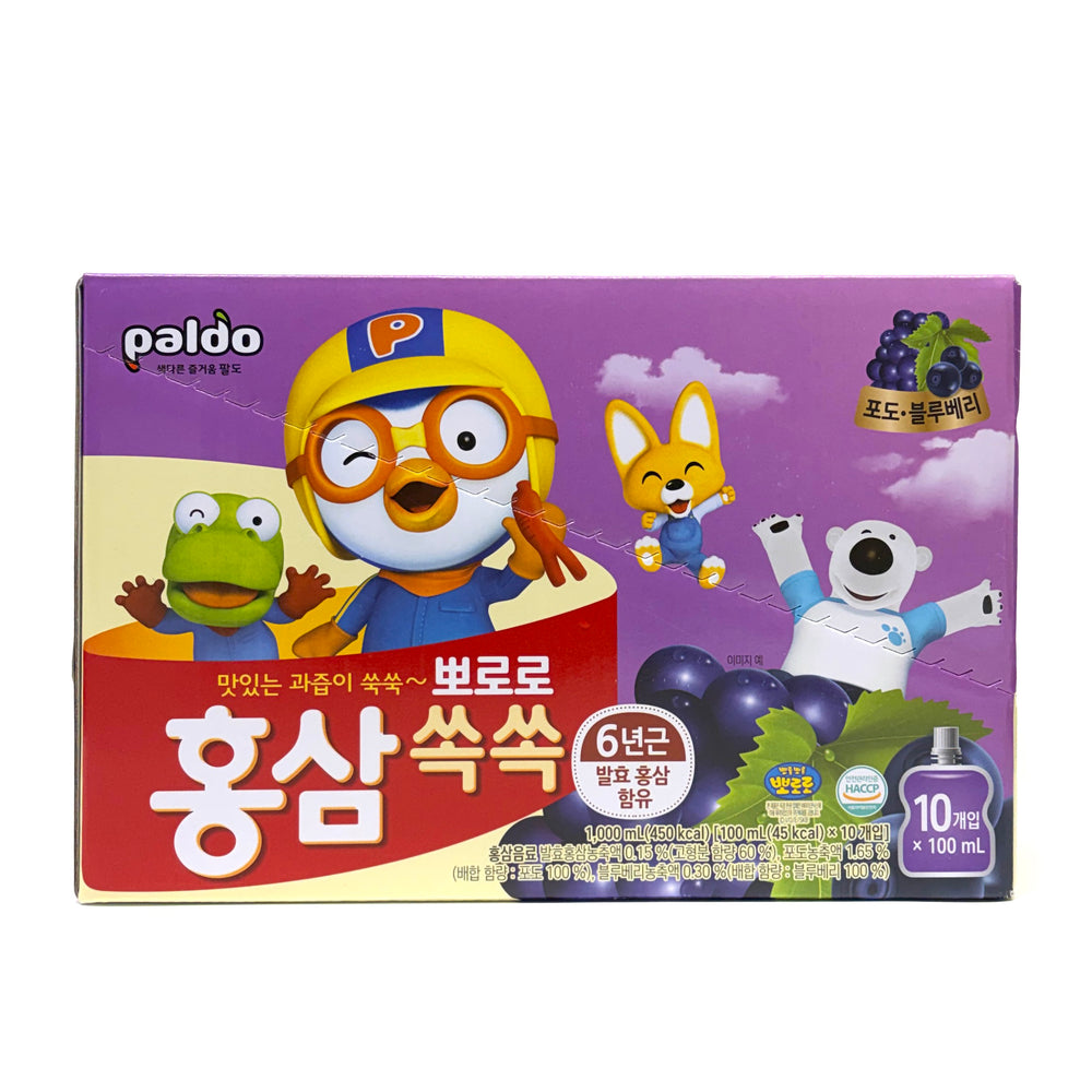 [PALDO] Pororo Red Ginseng Drink Grape & Blueberry / 팔도 뽀로로 홍삼 드링크 포도 블루베리 (100ml x10pk)