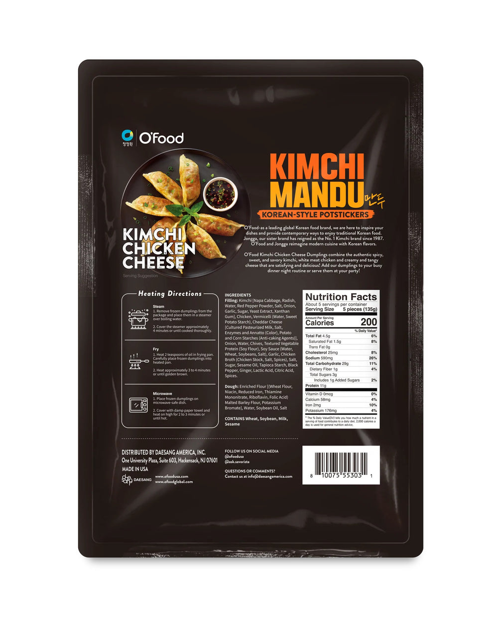![[O'Food] Kimch Chicken Cheese Dumpling / 청정원 오푸드 김치 치킨 치즈 만두 (1.5lb)](http://www.hanyangmart.com/cdn/shop/products/10016_KimchiChickenCheeseDumpling_680g_2048x2048_8c43c7dc-4343-4f35-a883-2f2042211928.jpg?v=1671160033&width=1066)