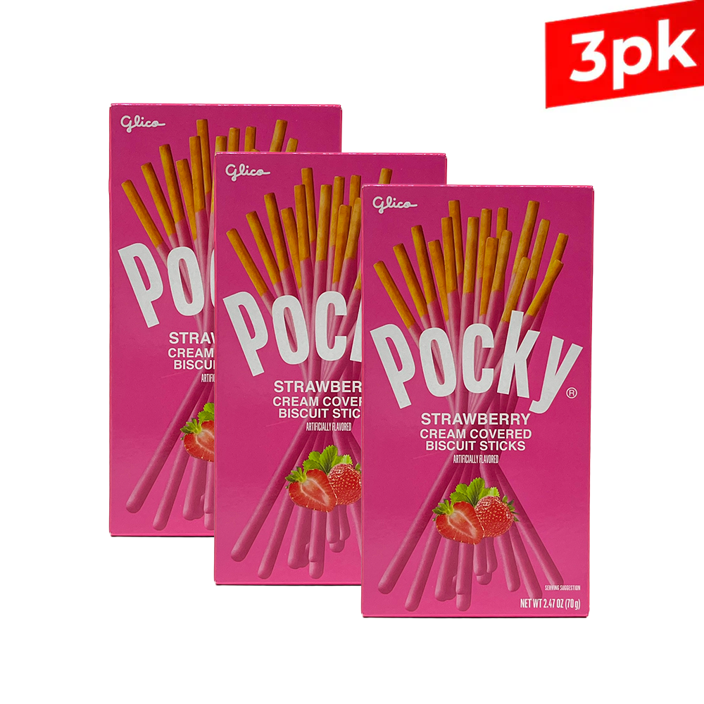 [Glico] Pocky Strawberry Cream Covered Biscuit Sticks / 글리코 포키 딸기 (70g x3)