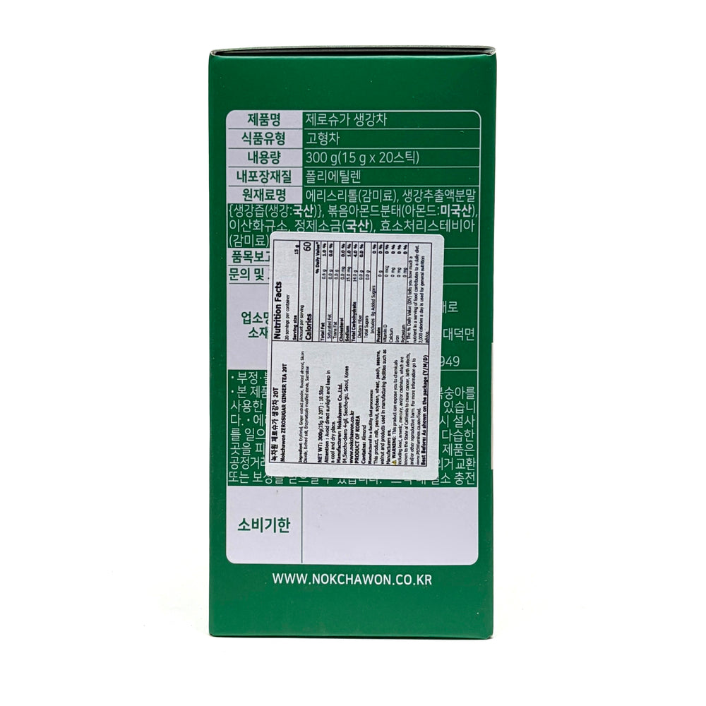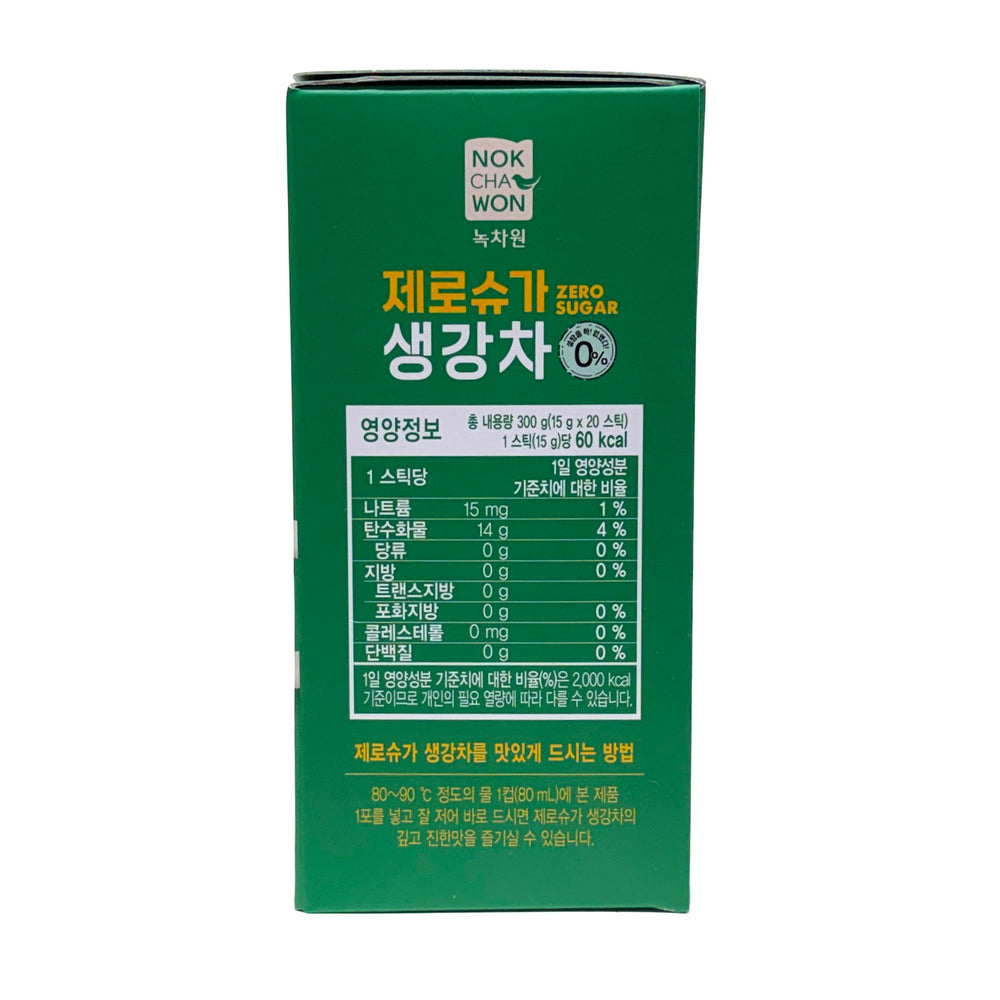 [Nokchawon] Zero Sugar Stevia Ginger Tea / 녹차원 제로 슈가 스테비아 생강차 (300g , 15gx20 sticks)