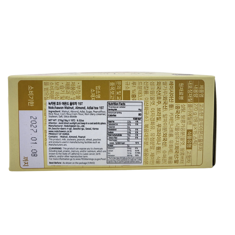 [Nokchawon] Walnut, Almond, Adlai Tea / 녹차원 고소한 호두 아몬드 율무차 (270g , 18g X 15 sticks)